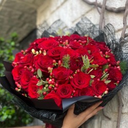 Kırmızı Güller, Arasında İthal Yeşillikler yer alıyor.